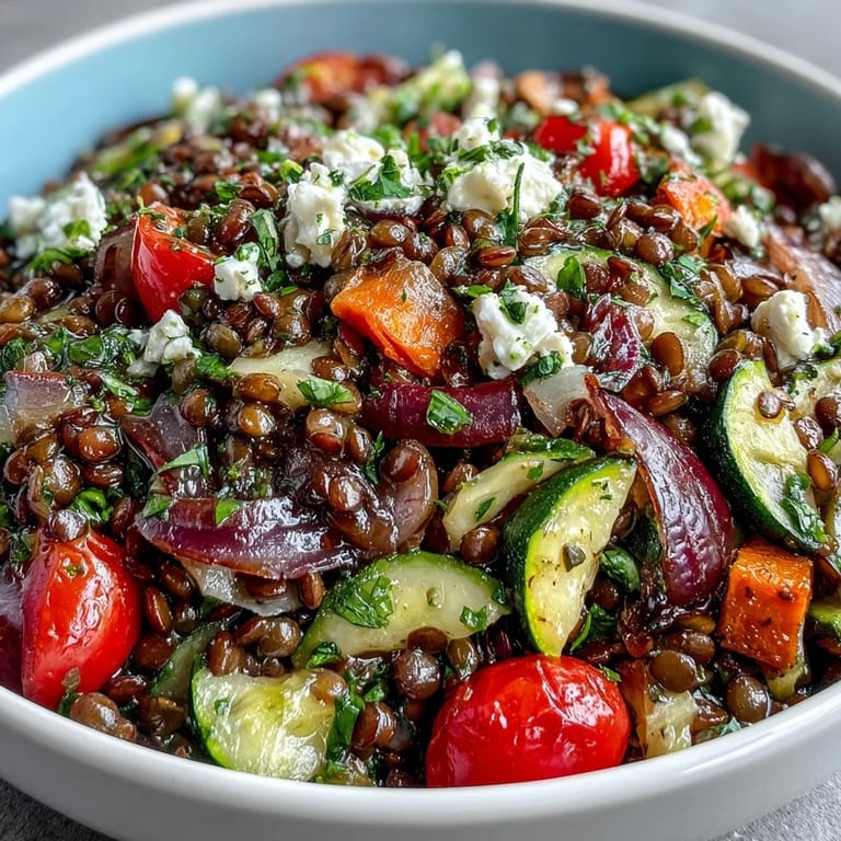 I've tried adding crispy chickpeas for extra crunch, swapping the lemon juice for red wine vinegar when lemons weren't on hand, and once even added roasted beets for deeper color and earthiness. The salad's architecture is sturdy enough to handle your preferences—the lentils and dressing will hold everything together regardless of what you add or change.