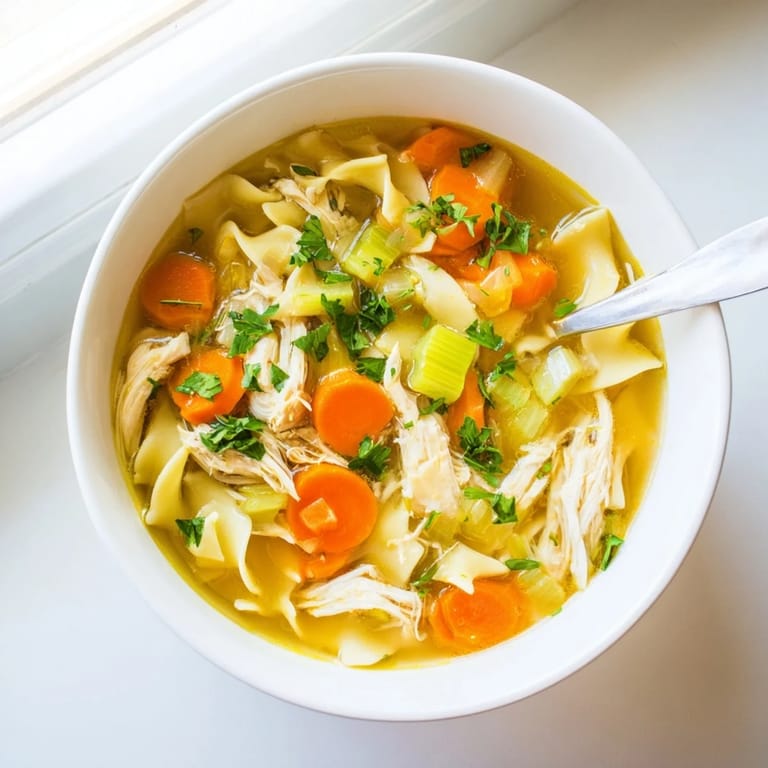 Pin This There's something about a grey Sunday that makes me crave chicken noodle soup. I once made a massive batch during a terrible February storm, and the way the steam fogged up my kitchen windows felt like the entire world had softened around the edges. My neighbor smelled it simmering and showed up with a loaf of sourdough, still warm from their oven. We ended up eating soup by candlelight when the power flickered out, and I've never felt more cozy in my life.