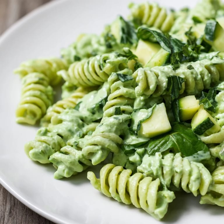 Short pasta shapes with nooks and crannies work best—fusilli, rotini, or penne are ideal because they catch the creamy dressing in their curves. The texture holds up well without becoming mushy.