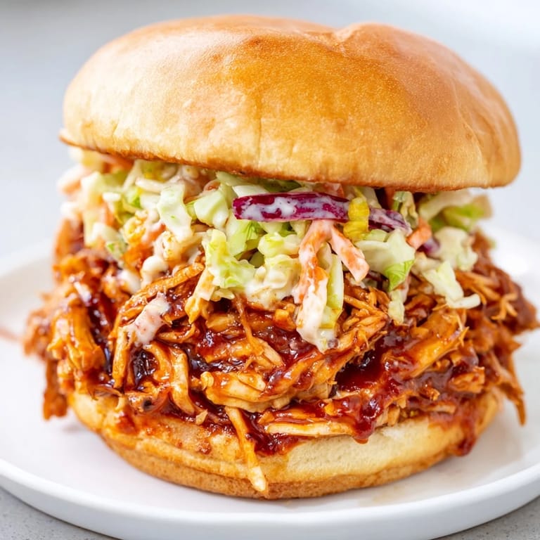Pin This My neighbor showed up one Saturday with a craving she couldnt shake, demanding we figure out how to make pulled chicken that didnt involve a smoker or six hours of waiting. We threw chicken breasts in the oven with some spices and broth, shredded them with forks while they were still steaming, and tossed everything with barbecue sauce. The sandwiches we built that afternoon, piled absurdly high with tangy slaw, became the template I still use whenever I need something satisfying without the fuss.