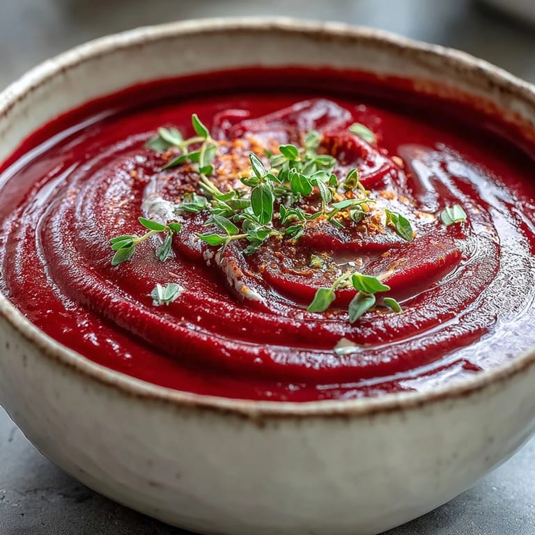 I made this for a dinner party last October when everyone was craving something warm but not heavy, and I watched it disappear faster than the crusty bread I'd paired it with. Someone asked if it was from a restaurant, which sounds silly, but it was one of those moments where a simple recipe suddenly felt like I'd accomplished something real in the kitchen. The deep crimson color in the bowls caught the candlelight that evening in a way that made the whole table pause for a second.