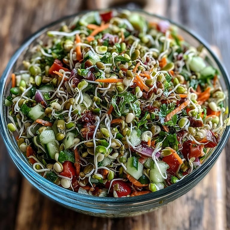 Pin This My neighbor handed me a jar of sprouted mung beans one Tuesday morning, insisting they'd change how I thought about salads. I was skeptical until I bit into one—that crisp, almost grassy freshness woke something up in my kitchen routine. What started as curiosity turned into a weekly ritual of layering sprouts with whatever vegetables looked promising at the market. This salad became my answer to those days when I wanted something alive and bright on the plate, not heavy or complicated.