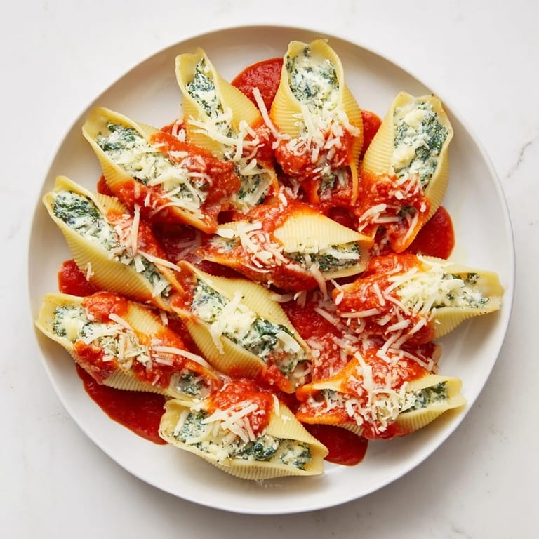 Cook the shells 2 minutes less than package directions so they stay firm. Handle them gently when draining and arranging on the tray. Overcooked shells become fragile and difficult to fill.