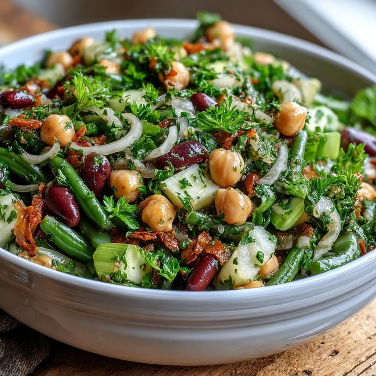 Pin This My neighbor showed up at a summer barbecue with this three-bean salad one July, and it completely changed how I think about potluck dishes. The thing was, I'd always assumed bean salads were boring, something people made when they ran out of ideas. But watching her pull this vibrant bowl from the cooler, with beans glistening in that golden vinaigrette, I realized I'd been missing something obvious. The smell alone—tangy and bright—made me ask for the recipe right there on the patio. It's been my go-to ever since, especially when I need something that tastes better the next day and actually makes people want seconds.